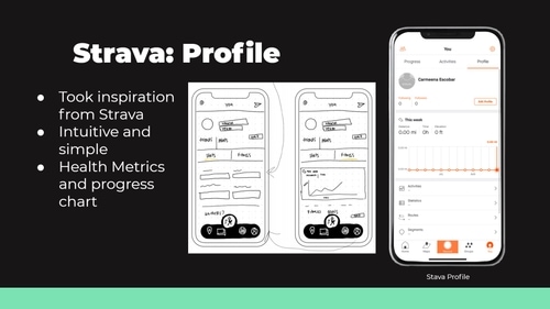 The competitor we believed had the strongest overall design for their profile was Strava. Strava was chosen as our main inspiration due to the well-designed format of health metrics and social aspects.